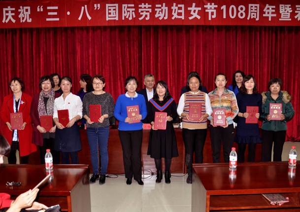 草长莺飞风送暖,又是一年三·八时,3月7日下午4时,新疆大学庆祝“三?八”国际劳动妇女节108周年暨表彰大会在行政楼一楼会议室隆重举行。校党委副书记、校长卫利·巴拉提,校党委副书记、校工会主席柴林,校党委常委、副校长帕里旦·吐尔逊出席会议,校党委常委、副校长、校女工委主任孟凡丽主持会议。受表彰的“先进女教职工集体”、“优秀女教职工”和“优秀女教职工工作者”代表及校属各单位负责人等近百人参会。